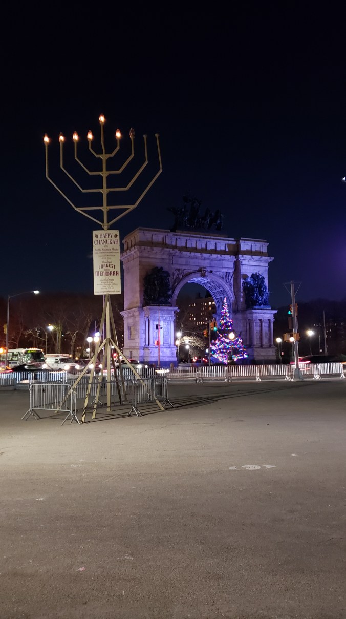 Igualmente, en Grand Army Plaza, colocan otro árbol que contrasta con la Menorah que está allí también por la celebración de Hanukkah (esto es una Menorah y esto es Hanukkah).