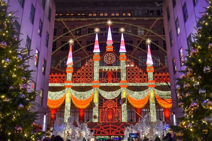 Además, a parte de poder disfrutar del árbol, cuando oscurece, se puede ver el espectáculo de luces y música de los grandes almacenes Saks. Bajo mi punto de vista, los escaparates decorados para estas fechas en dicha tienda, no eran, ni de lejos, tan espectaculares como los del año pasado. Pero, para gustos, colores.