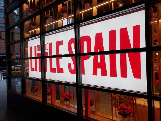 Otros alicientes de este nuevo barrio, a parte de esta escultura, es un centro comercial con múltiples opciones, desde tiendas de reconocidos diseñadores hasta marcas más asequibles, como Madewell o Zara, por ejemplo, restaurantes…O mi favorito, el mercado de Little Spain. Se trata de una zona de restauración creada por los chefs españoles José Andrés y los hermanos Albert y Ferran Adriá. Puedes encontrar restaurantes o, la parte que más me gustó, la del mercado. Recomiendo 100% esta parte de Little Spain; está estructurada como un mercado español de comida donde puedes degustar vinos, tapas, zumos…Cada puesto está supervisado personalmente por gente del equipo de José Andrés. Yo probé la tortilla, empanada, chocolate con churros…La relación calidad-precio es buena, un poco caro, algo que ya suponía al ser Nueva York y para la zona en la que está situado. Todo estaba riquísimo y, para alguien que está lejos de casa y a quien le chifla ir de tapas tanto como a mí, es una maravilla tener esto aquí (de vez en cuando).