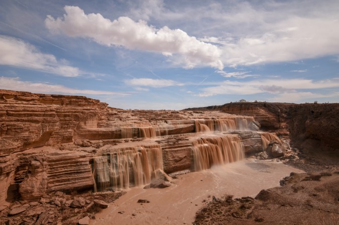 Volviendo al tema que nos ocupa, tras nutrirnos bien, pusimos rumbo a Grand Falls. Esta maravilla de la naturaleza se encuentra a apenas una hora de Flagstaff. Como he mencionado antes, para poder llegar, tenéis que pasar por muchos caminos de tierra que, en ocasiones, van a ambos lados (derecha e izquierda), por lo que es muy importante fijarse bien para no tener que dar la vuelta y empezar de nuevo.