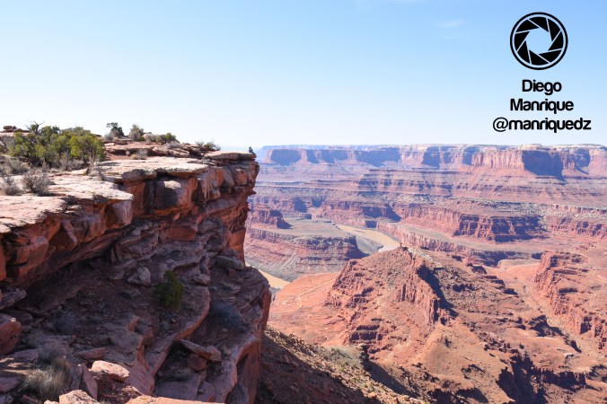 El parque estatal de Dead Horse Point es una delicia. Tanto para la vista, por su espectacular paisaje de “acantilados” y roca rojiza como por su tranquilidad. Al ser un parque estatal, como el de Valley of Fire (Nevada) no está lleno de gente y, al ser pequeño, puedes añadir más planes al día. Dead Horse Point, cuenta con un pequeño centro de Visitantes, varias rutas cortas y, como ya he dicho, vistas espectaculares. La entrada son $10 por coche y, si no recuerdo mal, te sirve para uno o dos días. Nosotros lo disfrutamos mucho, incluido el picnic improvisado que compramos en uno de los carritos de comida que hay allí. O el único, mejor dicho.
