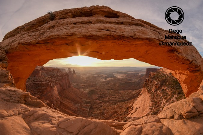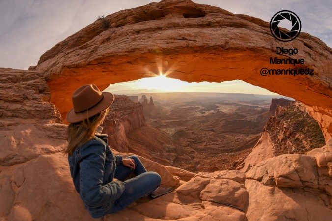 Todo lo que allí hay, destaca e impresiona. Dos sílabas: BRU-TAL. Si fuese vosotr@s, no me dejaría nada por ver. Pasamos todo el día allí y hubiese repetido al día siguiente. Bueno, de hecho, repetimos. Si puede decirse así. Al día siguiente de estar en Canyonlands, madrugamos mucho. Algo así como las 5 de la mañana, o un poco antes, para poder ver el amanecer en el Mesa Arch. Lo habíamos visitado el primer día, pero queríamos verlo en ese momento. Cuando el sol sale. Y creeréis que estamos locos, pero no. Cuando llegamos allí de madrugada, ya había mucha gente allí; ya fuese para verlo, para hacer una foto, para grabarlo en la memoria.