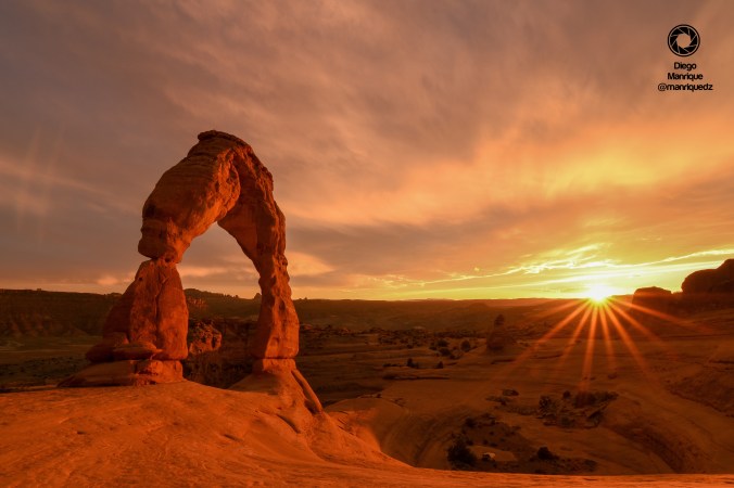 Lo que pasó después, aún hoy, no me lo creo. De repente, el cielo se abrió y una potente luz dorada se abrió paso entre las nubes iluminando el Delicate Arch de manera INCREÍBLE. La gente aplaudía, los “wow” no paraban de repetirse y la imagen de ese atardecer, estoy segura que quedó grabada en la retina de todos los que estamos allí. Como les dije a mis padres, el atardecer más increíble que he visto en 32 años de vida. Y una experiencia para nunca olvidar. Se nos hizo de noche, y tuvimos que caminar a oscuras sólo con las pequeñas linternas que habíamos comprado para el viaje. Pero me fui feliz a dormir. MUY feliz.
