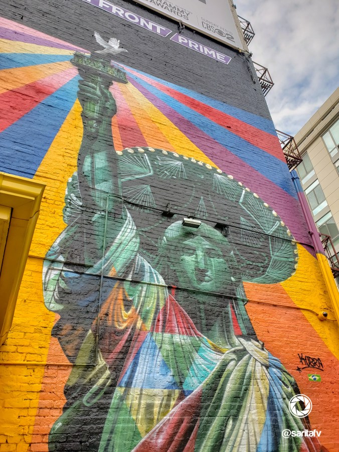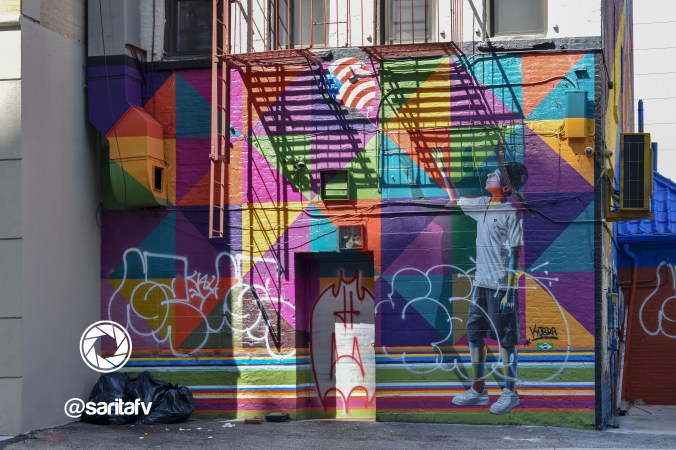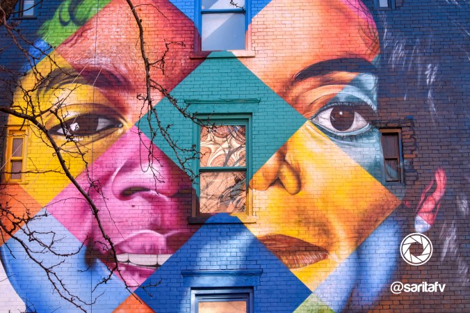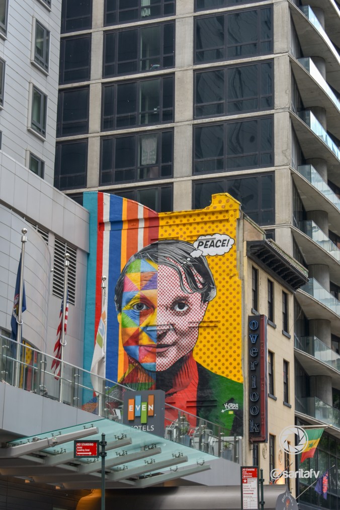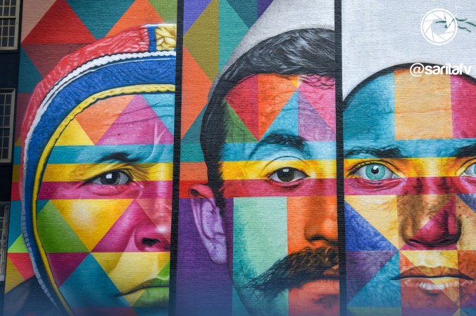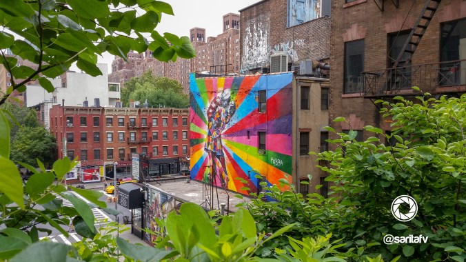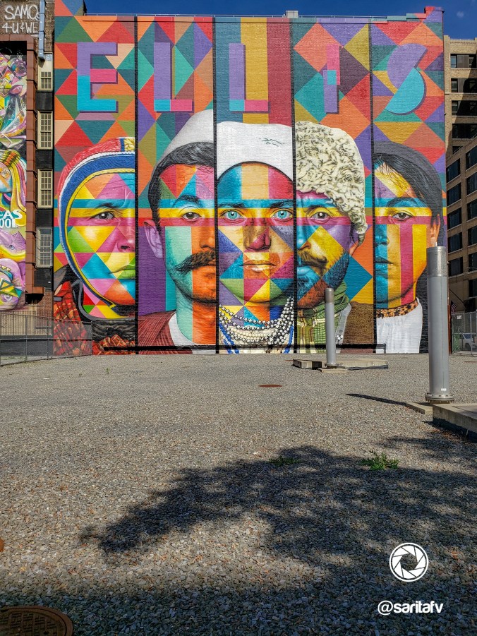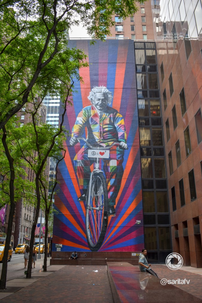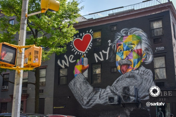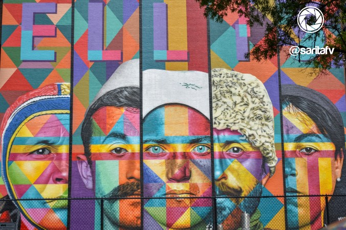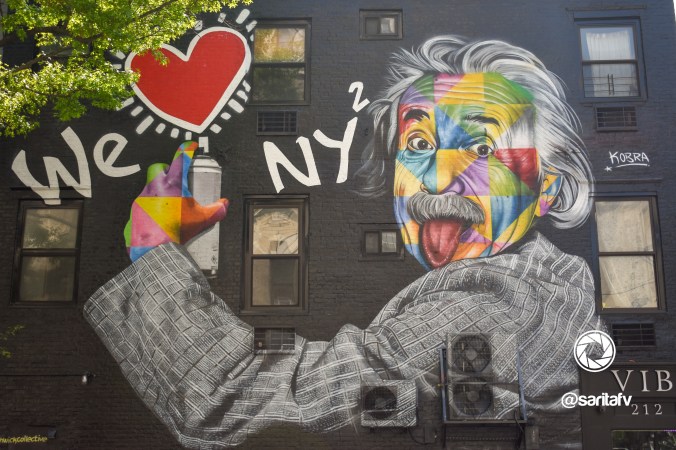 Eduardo Kobra, es un artista urbano nacido en Brasil que pasó 5 meses desarrollando su obra “Colores de la Libertad” o “Colors of Freedom” por las calles de Nueva York. Cada obra, intenta promover un mensaje de Paz (no sólo puedes encontrar murales de Kobra en NYC; Los Ángeles o Chicago son otras ciudades en las que puedes ver su obra).