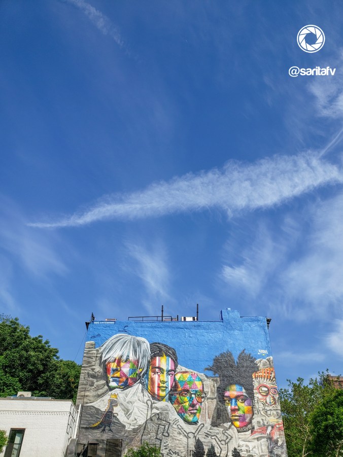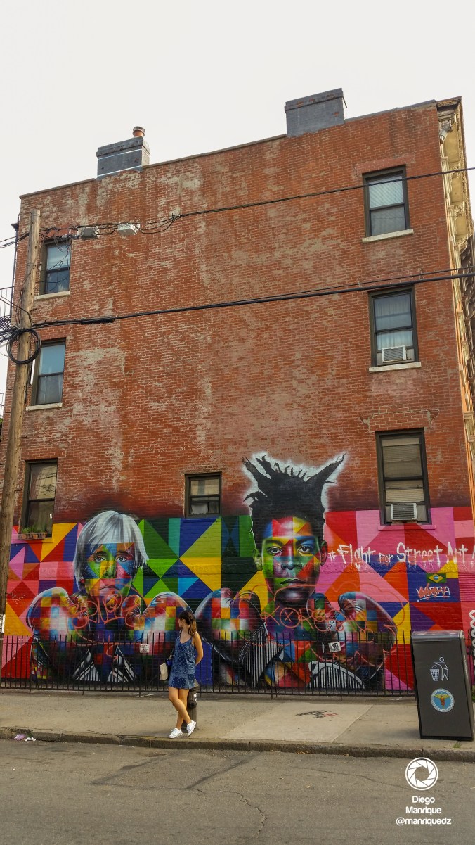 Antes de “Colors of Freedom”, Kobra ya tenía otros murales por la ciudad como “The Kiss” que representaba el famoso beso entre la enfermera y el marinero en Times Square, y que se podía ver desde la High Line. Hablo en pasado porque este mural ya desapareció, pero fui lo suficientemente afortunada como para verlo en directo cuando vine por segunda vez de vacaciones a NYC en 2015. Otra obra que ya estaba por esa época, es la que representa a Basquiat y Warhol en Williamsburg y que aún sigue allí.