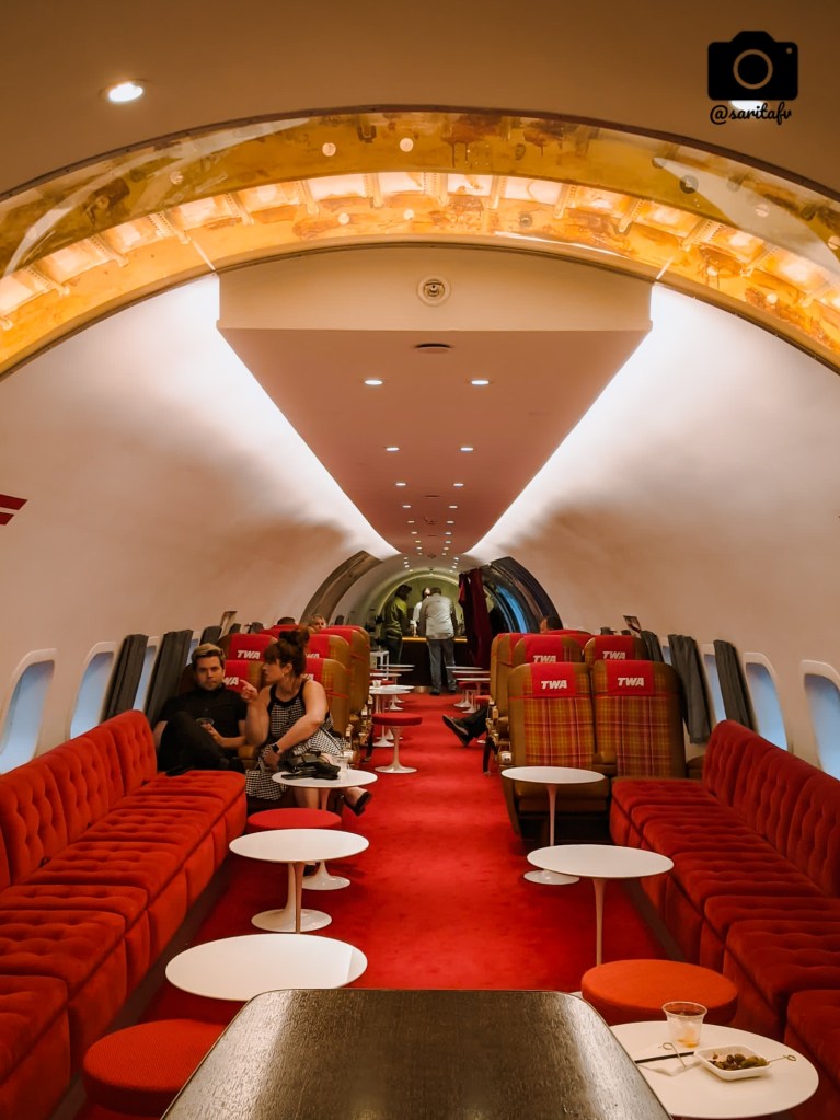 Antes de convertirse en un lounge para tomar ricos cócteles, Connie fue un avión de pasajeros, además de servir como Air Force One para el Presidente Eisenhower, desde los años 40 hasta 1960. Encargado en 1939 por el excéntrico propietario de TWA, Howard Hughes, el Lockheed Constellation “Connie” rompió el récord de velocidad transcontinental de la época en un vuelo desde Burbank, California, a Nueva York en 1946.